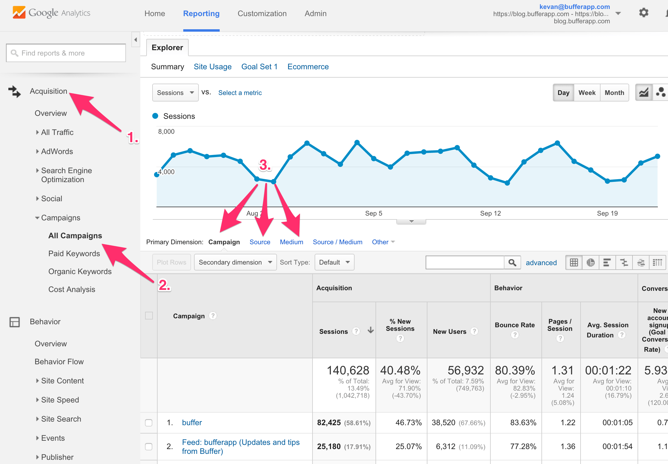So, let’s say you’re running a social media campaign about how dogs rule and cats drool. You can add a UTM campaign tag of “dogsrule” to all the links you share on social media. Then, when you hop into Google Analytics later, you can see the exact traffic impact of this campaign.