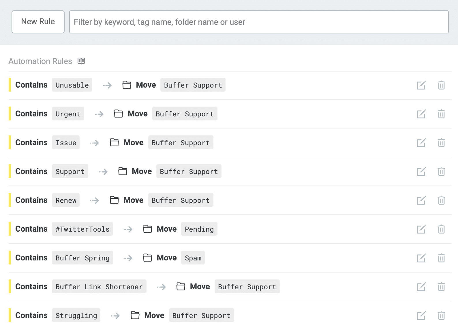 This is how we take the thousands of incoming messages each week and route them to the appropriate places. It’s how we handle spam, how we filter out non-Buffer “buffer” mentions, and so much more.