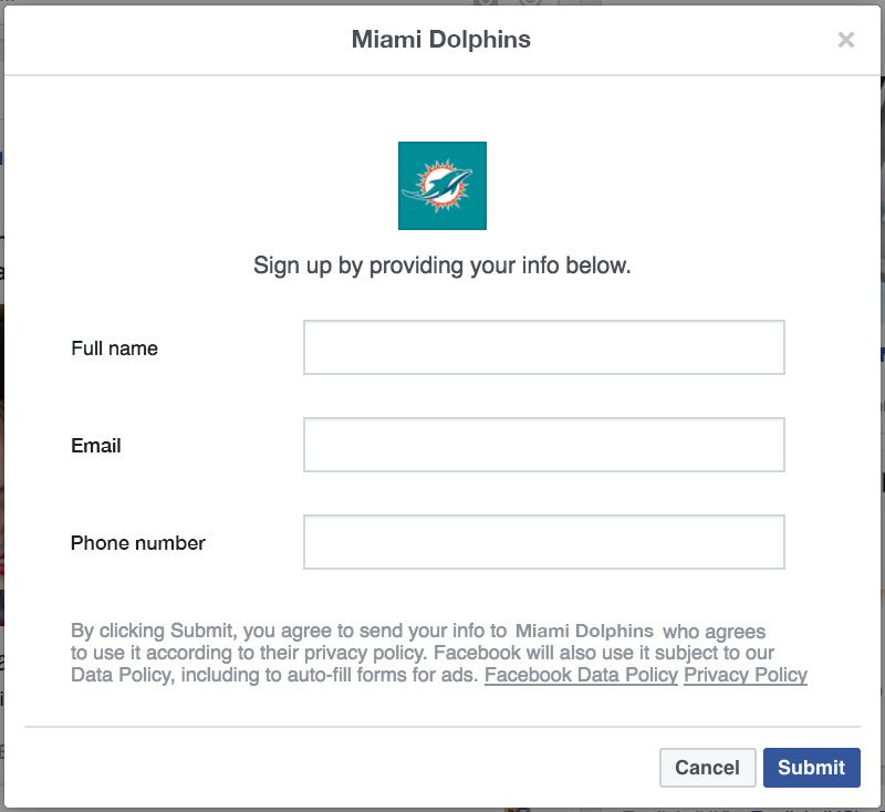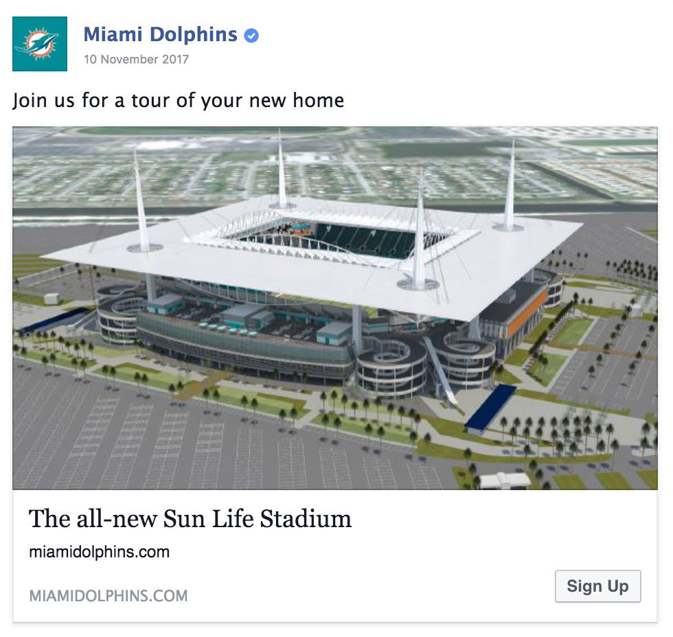 Instead of trying to make a sale directly on Facebook, the Dolphins instead focused on creating leads.