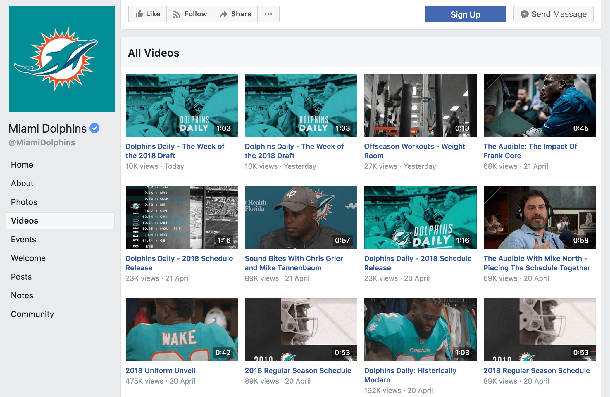 In 2017, the Dolphins became the #1 ranked NFL team for video views on Facebook.