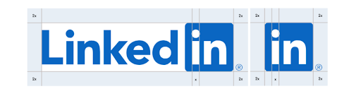 The LinkedIn logo should be surrounded by clear space 2x the side of the width of the ‘i’ in the logo. For example: