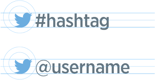The minimum size of the logo should be 16 pixels, and the empty space around the logo should be at least 150% the size of the logo itself. For example, if you’re adding the Twitter logo to a hashtag or username, it should have the correct 150% spacing between the logo mark and the next letter, number, or symbol: