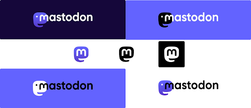 - Mastodon prefers the use of their white or black wordmark logos with the purple icon under the “m.”