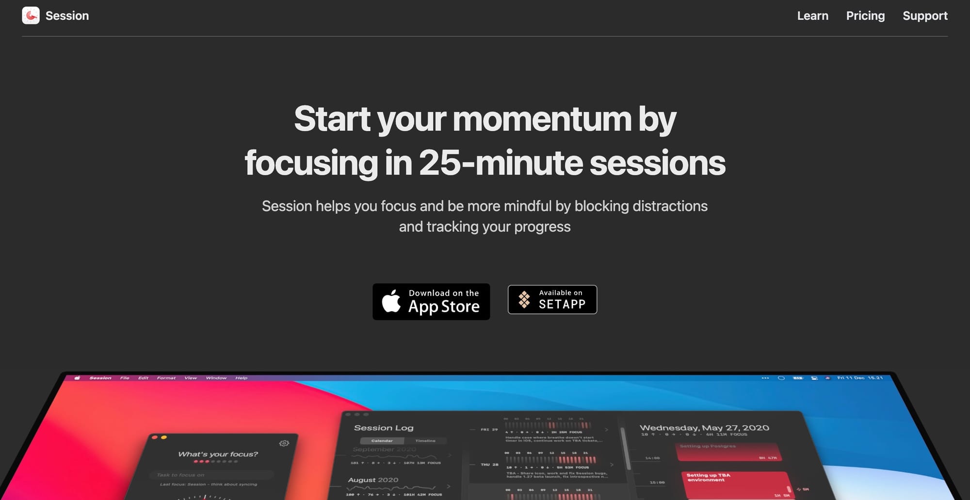 Session is a great choice for anyone who struggles with their focus and time management. Using a timer application helps you concentrate during the time you are working, it also helps you keep track of the time you have spent working.