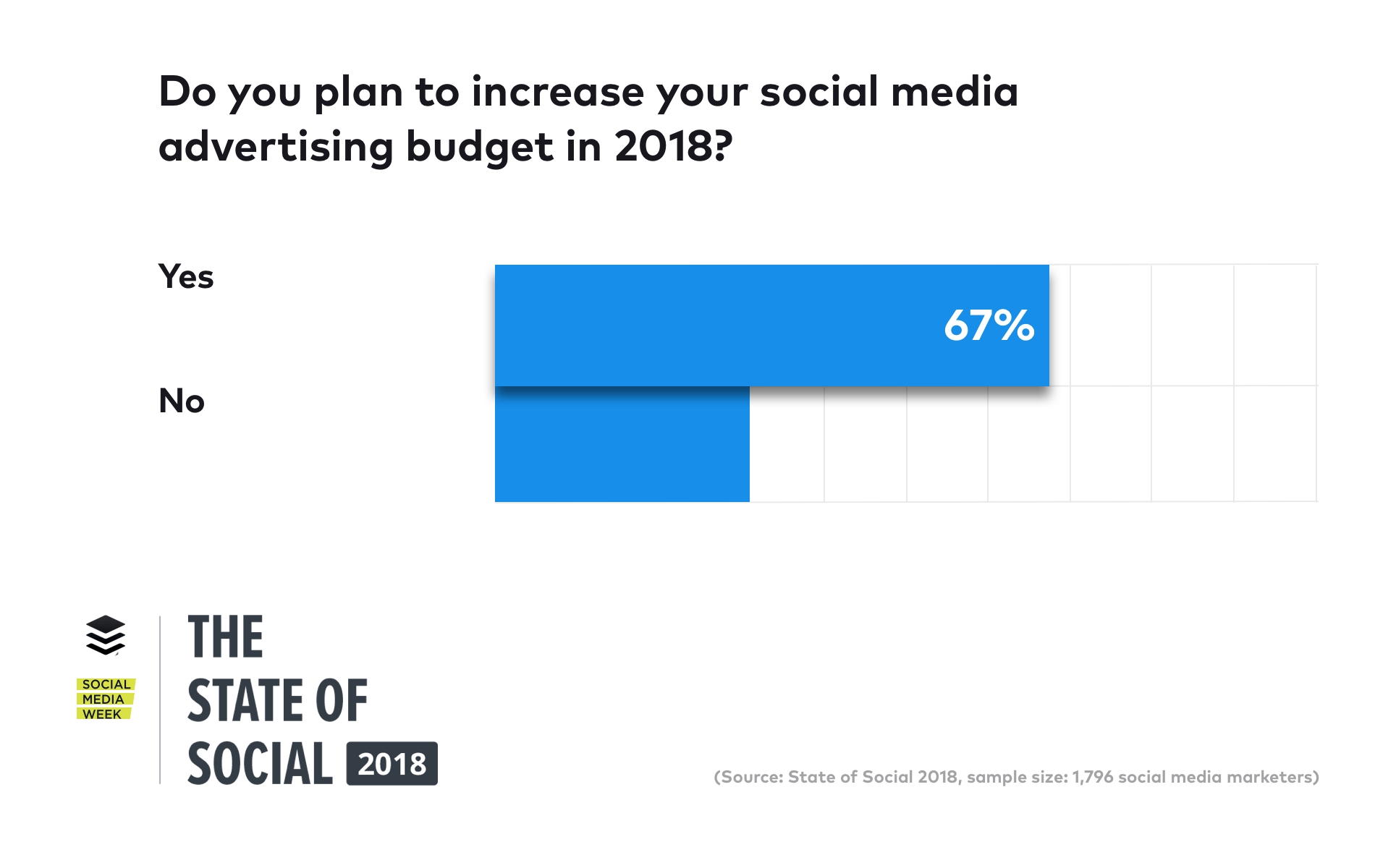 Looking ahead, 67 percent of businesses are looking to increase their social media advertising budget in 2018: