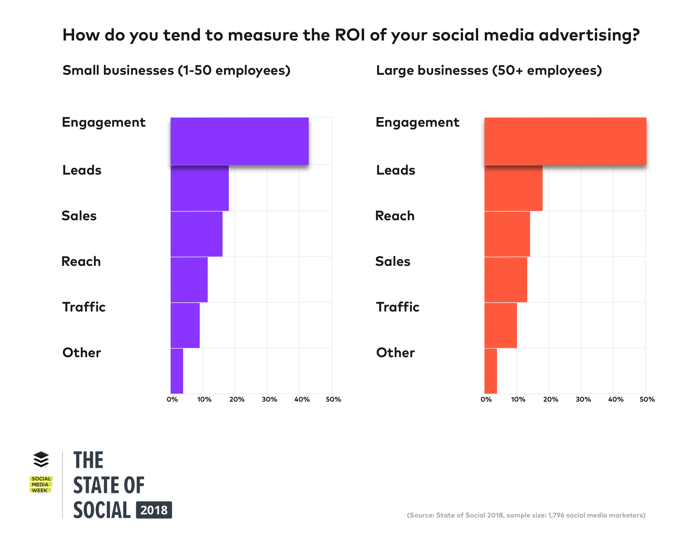 When we broke down the data by business size, engagement was still the #1 way both small and large businesses measure ROI from social media advertising: