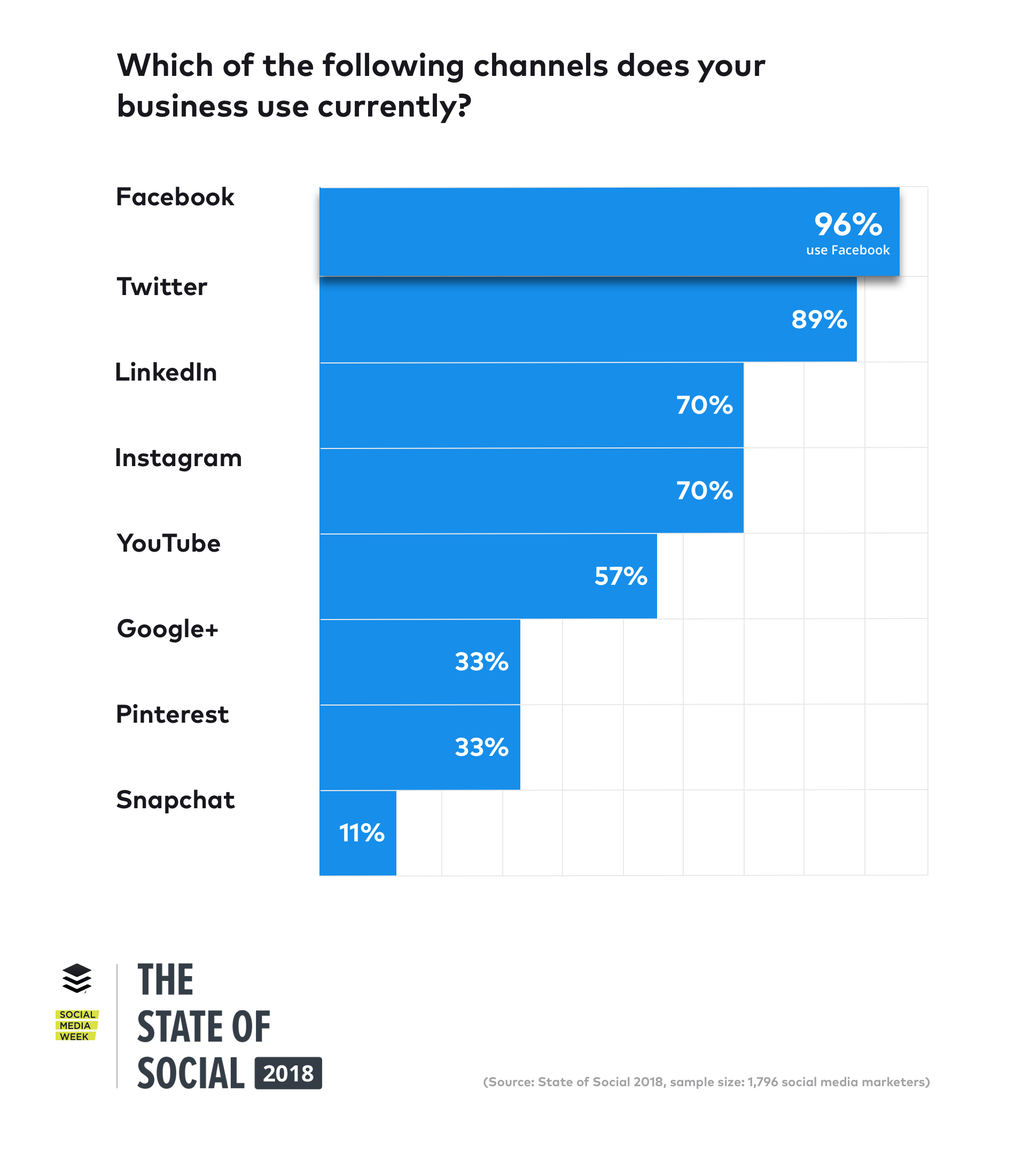 1. Facebook is still the leading platform for marketers (96 percent of businesses use Facebook)
