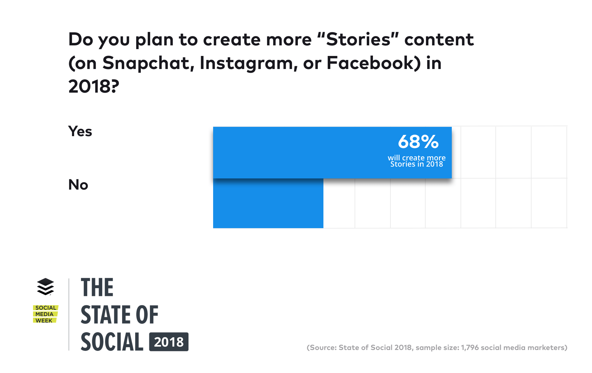 Further to this, 68 percent of respondents plan to create more stories content in 2018: