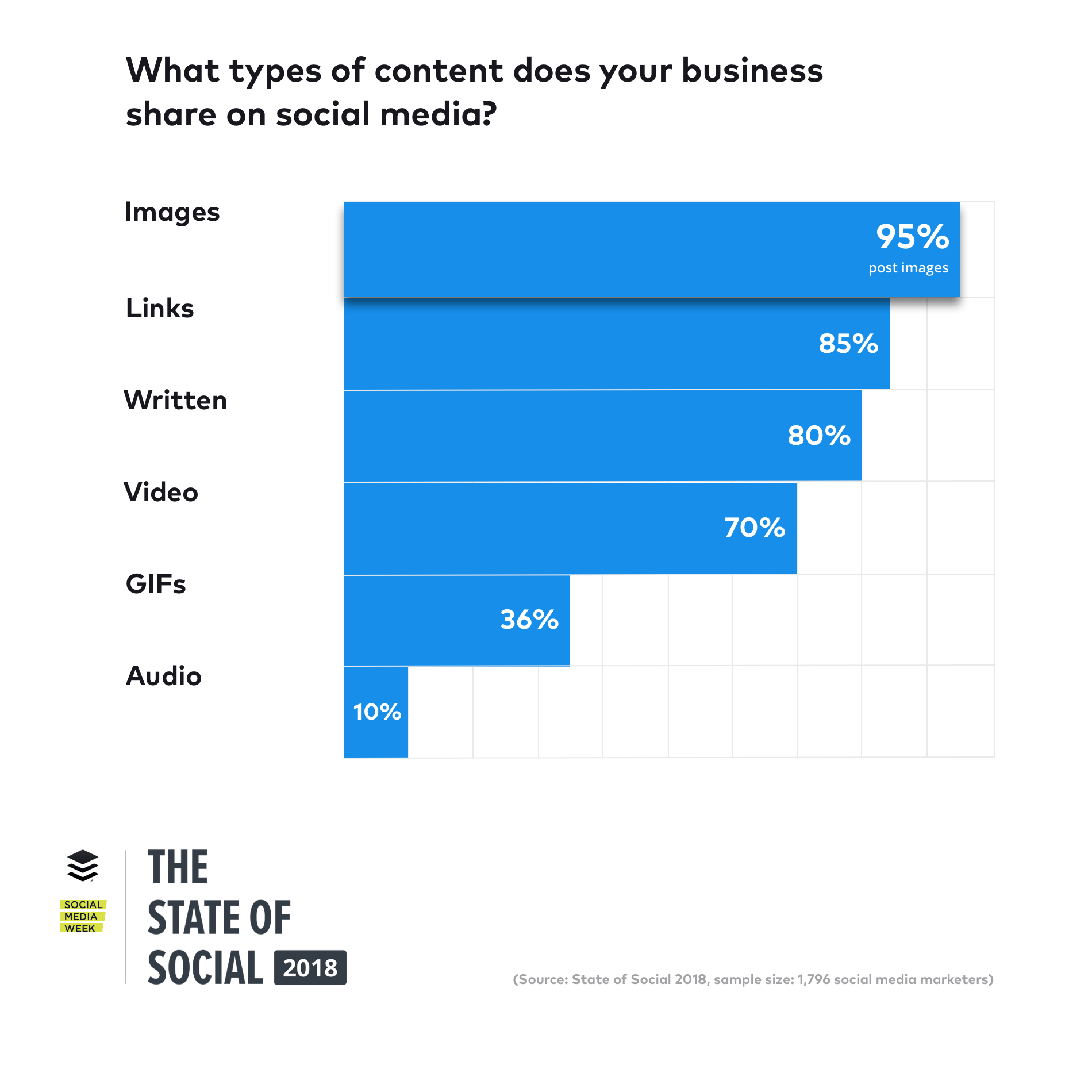 5. Images are the most shared type of content (95 percent of businesses post images to social channels)