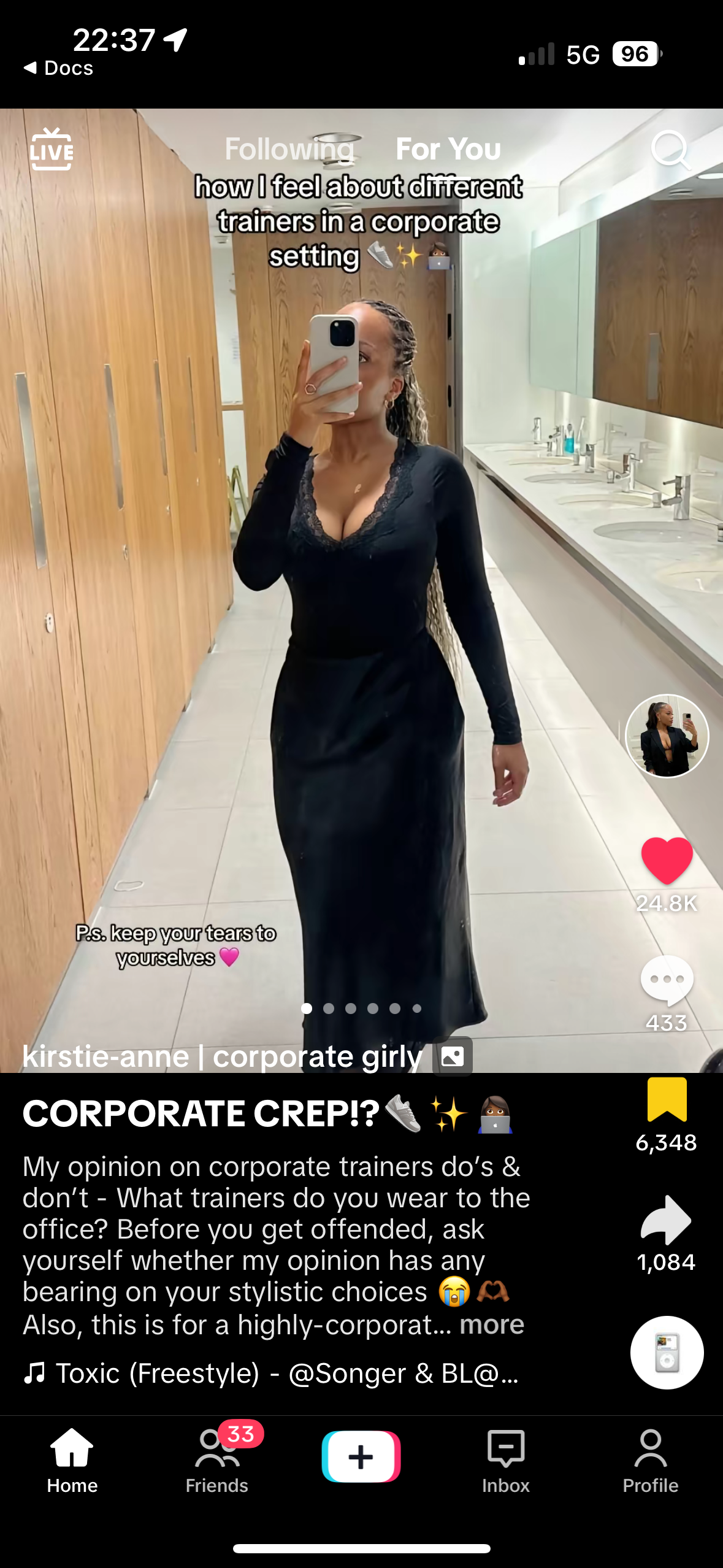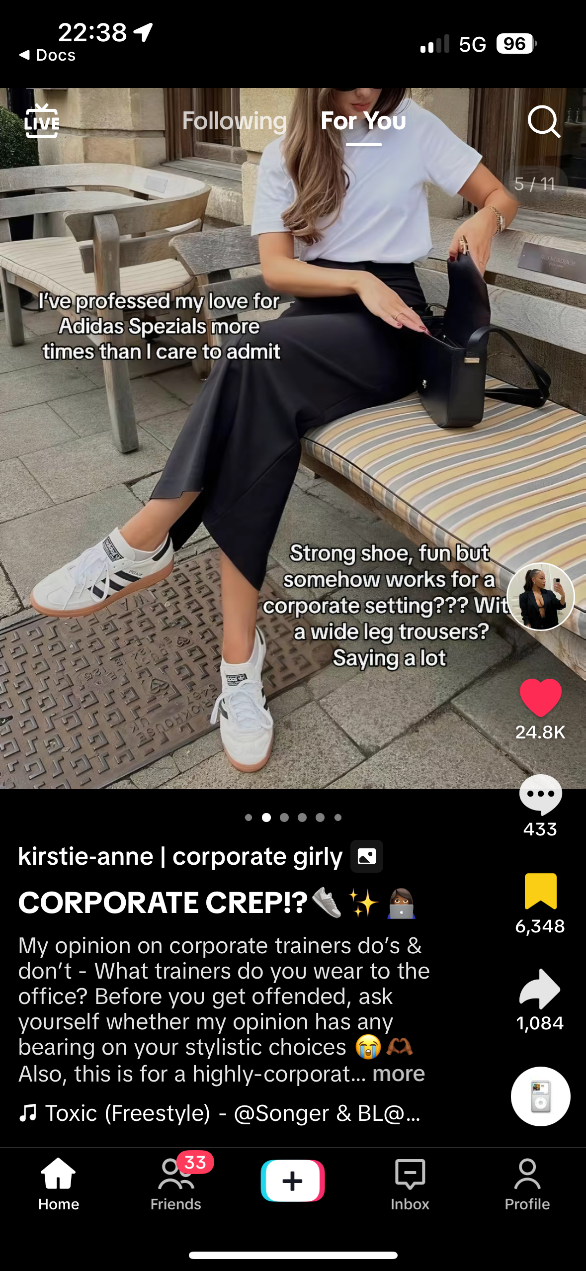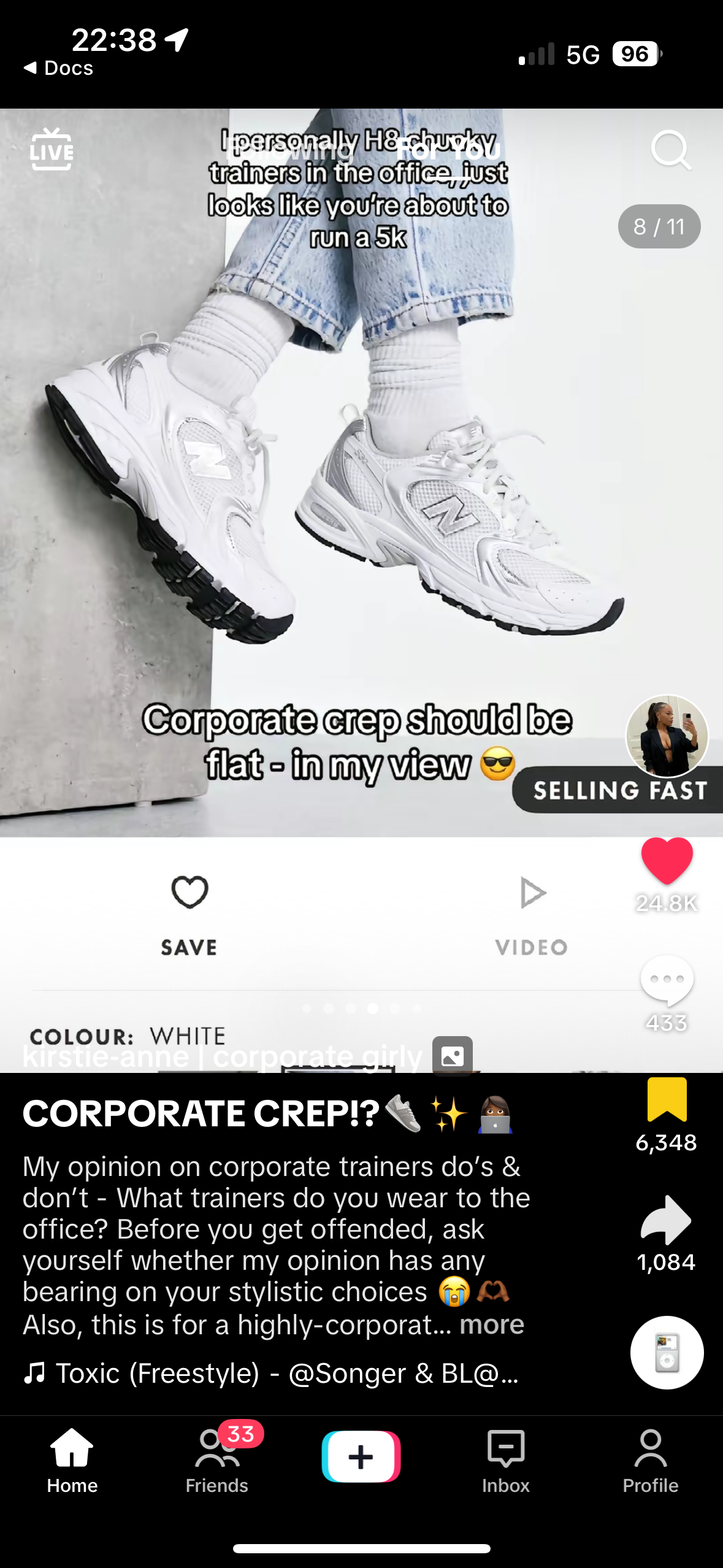 Add captions to clarify your thoughts or highlight the pros and cons, making it easy for viewers to grasp your opinions quickly. @kacorporategirly is well known (and trusted) among the “corporate girlies” of TikTok, so her reviews on different sneakers to wear around the office are taken seriously. She uses text and emojis to add her opinions.