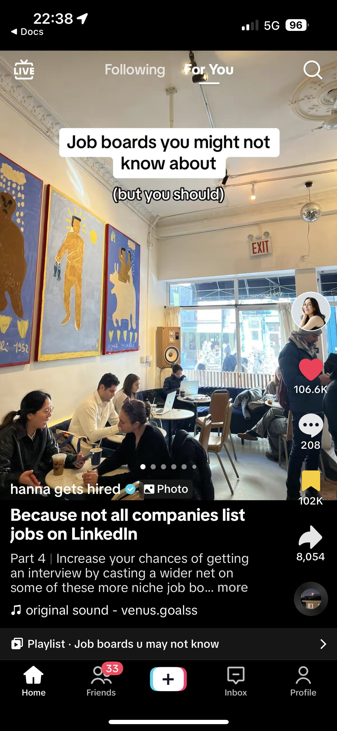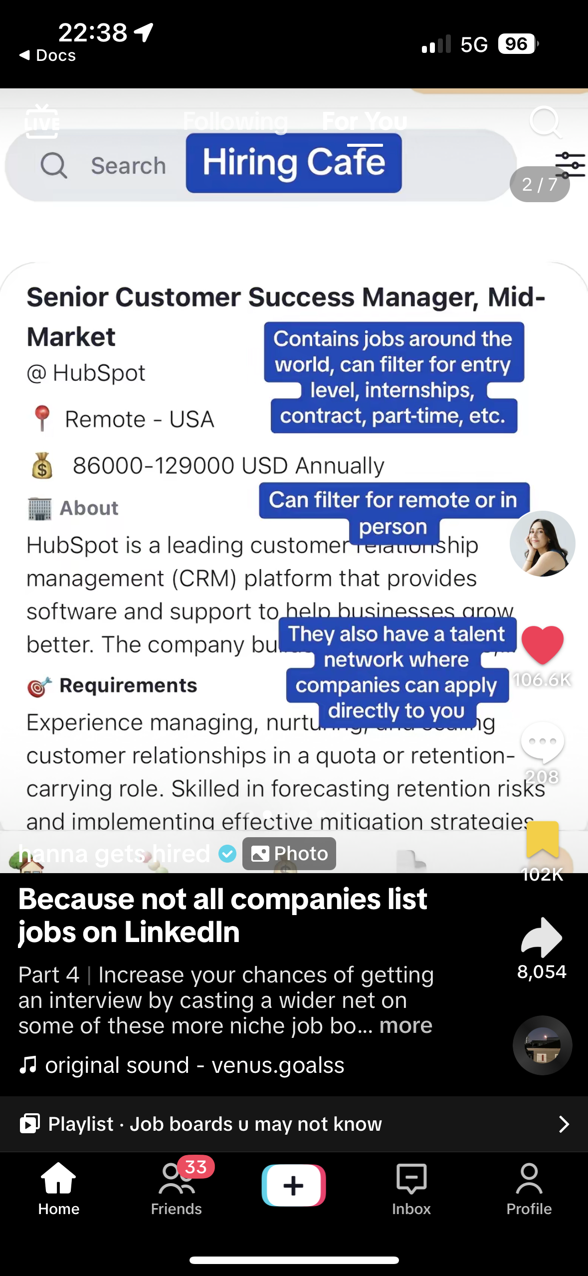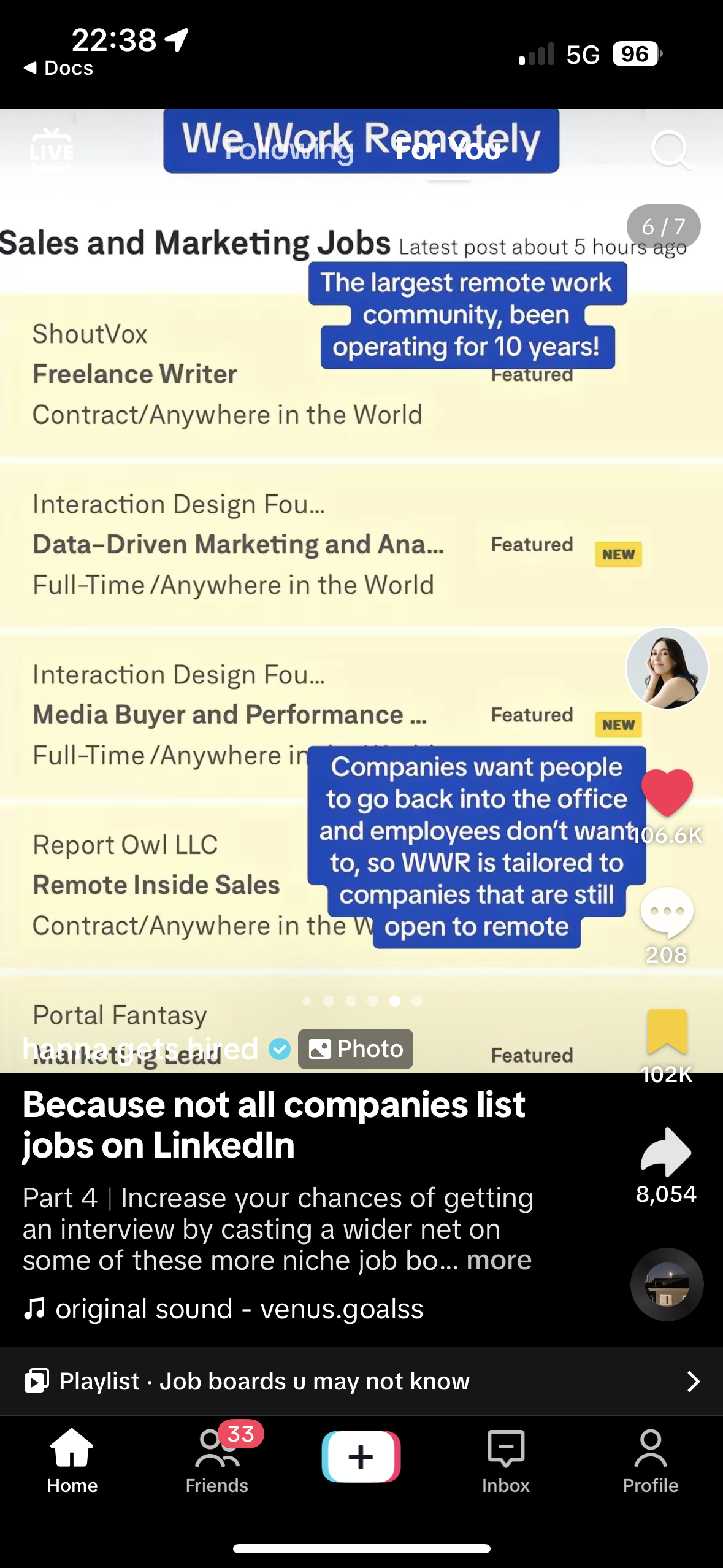 TikTok carousels are perfect for making personalized recommendations, whether it’s your favorite books, top travel destinations, or must-try products. @hannagetshired uses screenshots of different remote job boards as well as text, providing additional context to share recommendations to her audience.