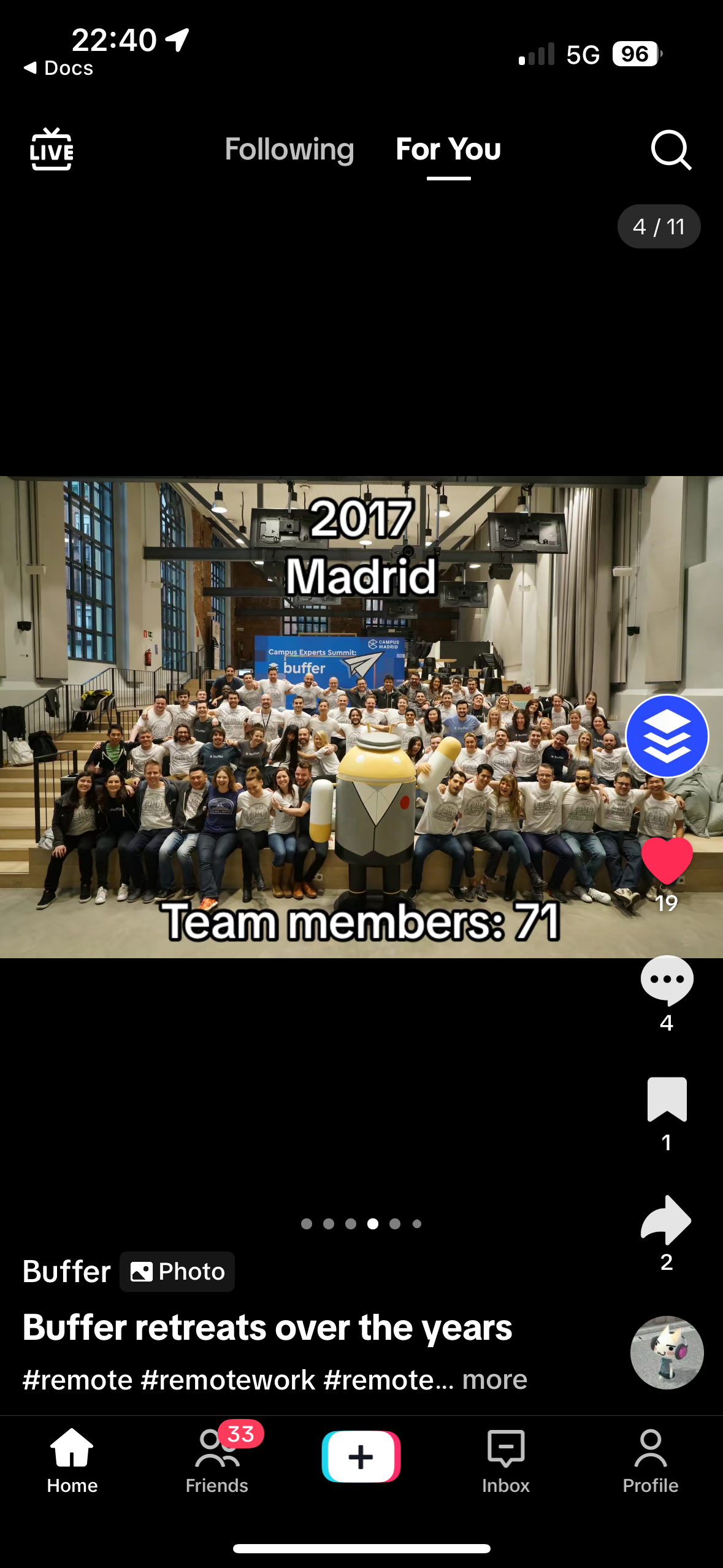 This visual storytelling format allows your audience to see real results and developments over time, providing a powerful and motivational narrative. @buffer highlights 13 years of retreats in one carousel.