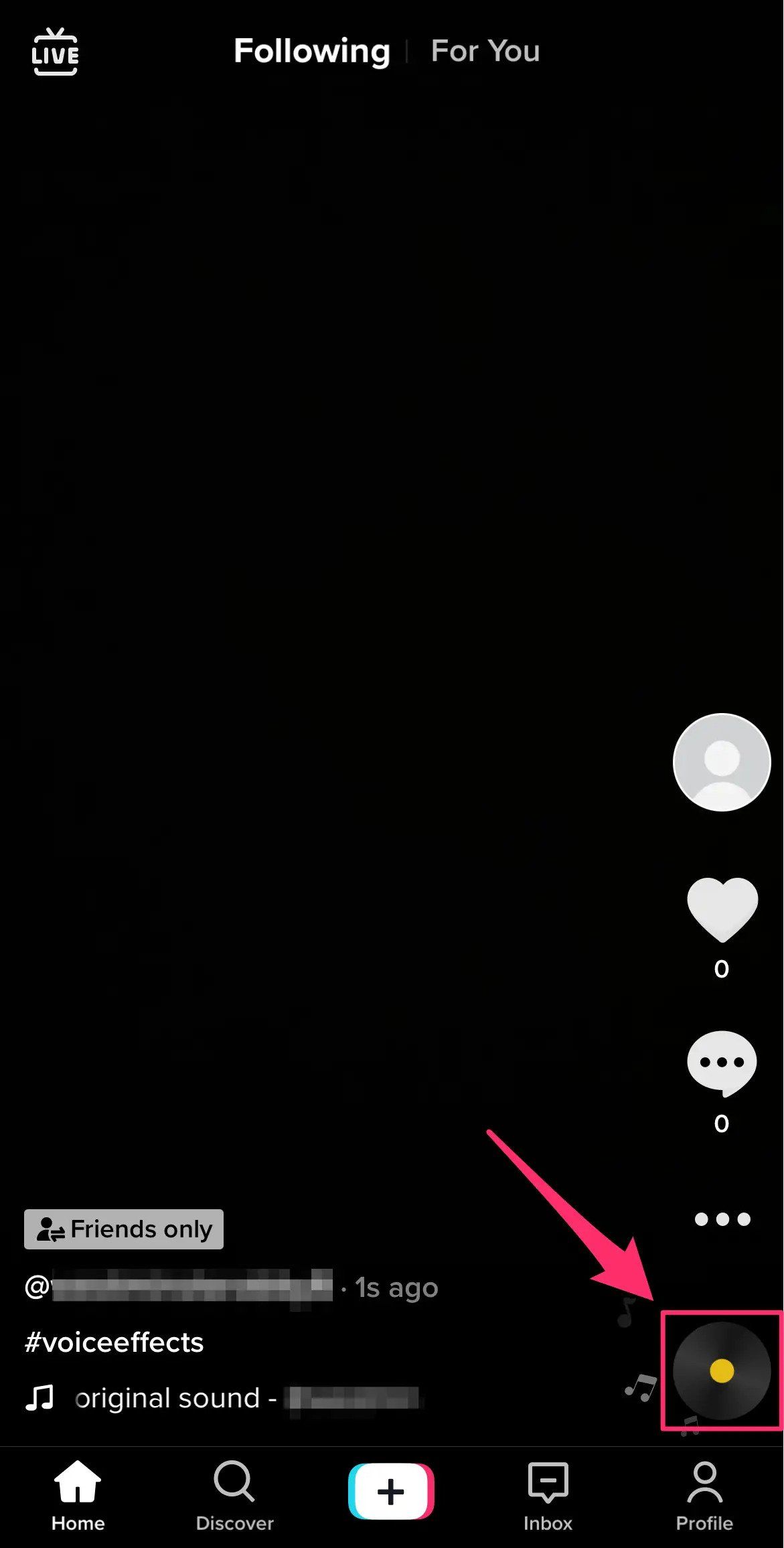 To create a sound, open a video where you’ve used your custom sound and tap on the spinning record icon in the lower right corner of the screen.