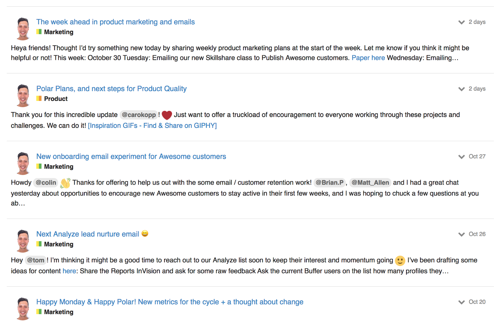 For the most part, I really enjoy collaborating on product marketing via our asynchronous channels. Our Discourse chat forum is one of them.