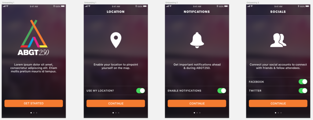 A few back and forth messages followed, mainly to address some privacy concerns regarding sharing location before we setup a Skype call to discuss further. This was the only call we had during the whole development of the app. Anjunabeats are based in London but being at Buffer I’m used to the usual timezone hurdles that come with remote work. The call went over a few other app solutions that are available, as well as running through what features would make the most sense for ABGT250.