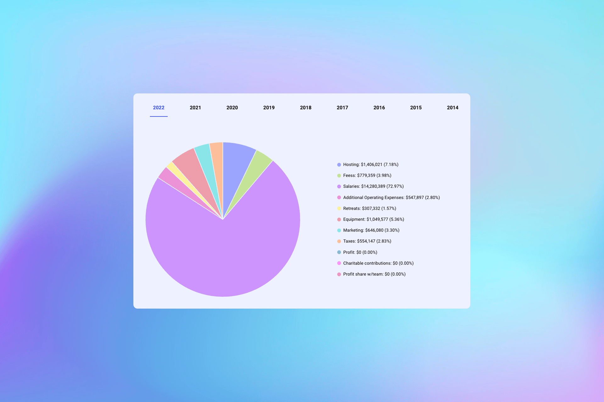We’re also happy to share a more sustainable way of providing this information — our new transparent pricing dashboard. You can refer to it anytime to see where your money goes when purchasing a Buffer subscription, and even look back at previous years to see how things have changed.