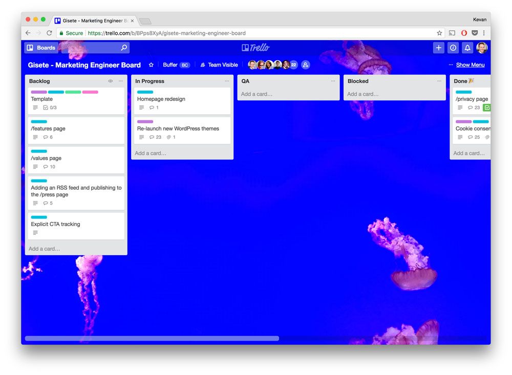 The below list of Trello boards are those that we actively use at Buffer across various teams. When possible, we’ve linked to transparent versions of the board (some boards we keep private because they contain feedback or information about teammates).
