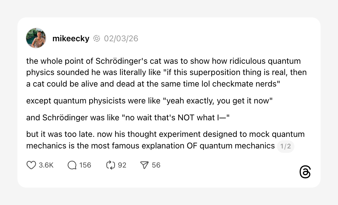 Connect your Threads account to Buffer and see what's trending while you write your next post. Maybe you'll find your own quantum physics moment!