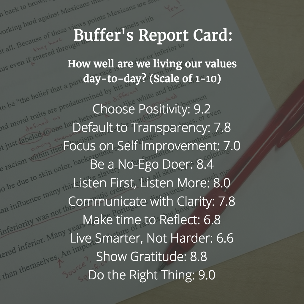 How would we grade ourselves on whether the values we talk about all the time are the values that are truly felt and experienced day-to-day at Buffer?