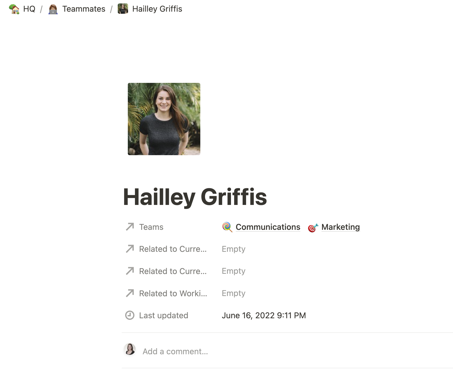 We now host these blueprints in Notion. We have one spot where every teammate at Buffer is listed alongside their team and now their work blueprint is included, too.