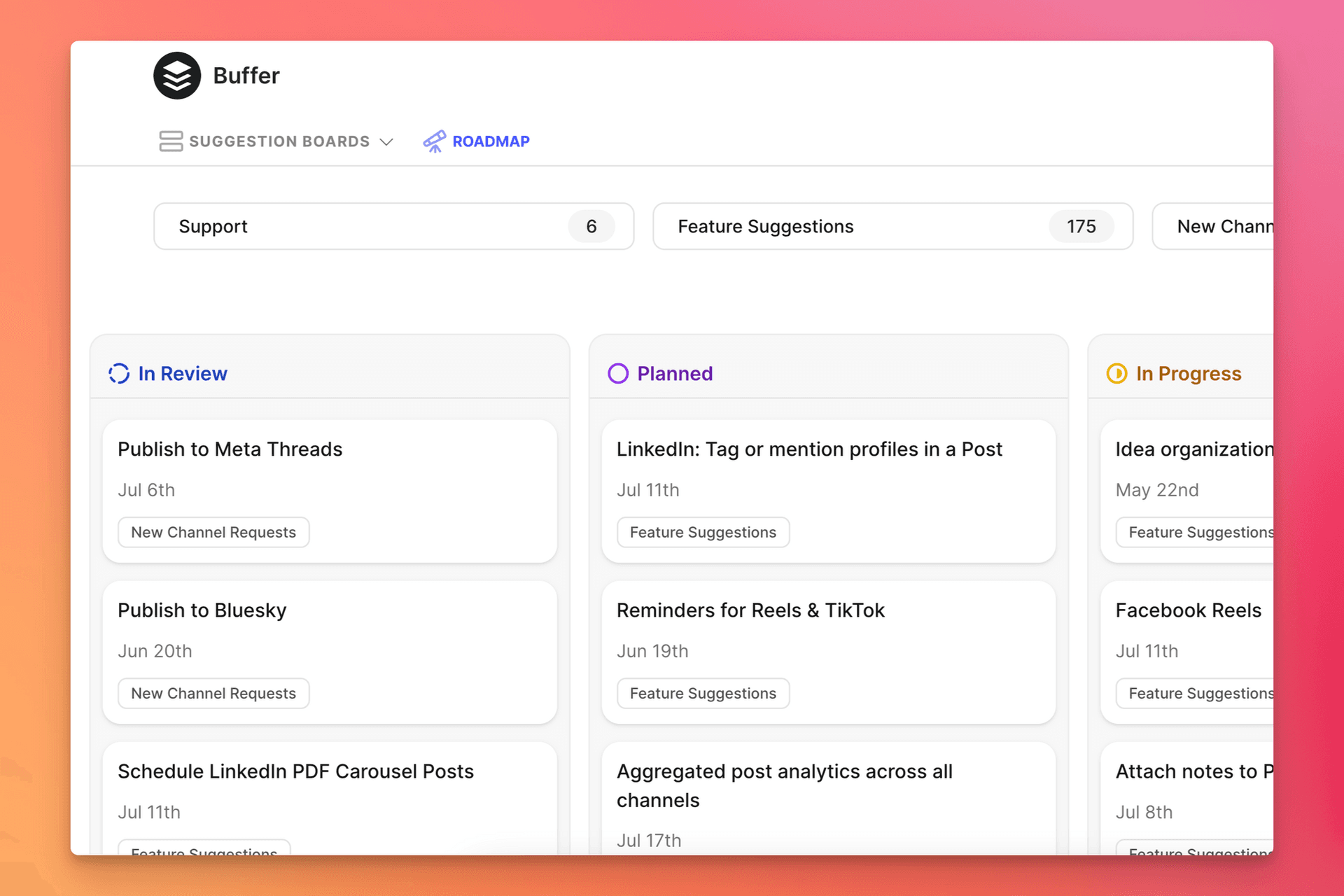The decision to integrate Threads came directly from you — our community. We received over 7,000 requests for this feature, and each one was a reminder of why we do what we do at Buffer.